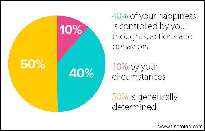 22. “[Forty percent] of your happiness is controlled by your thoughts, actions, and behaviors. [Ten percent] by your circumstances. [Fifty percent] is genetically determined.” — Lisa Lieberman-Wang
