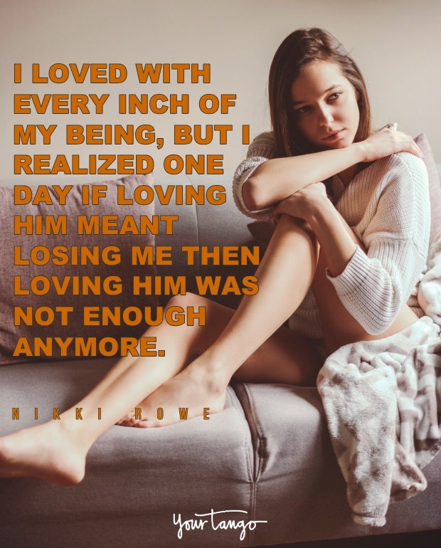 "I loved with every inch of my being, but I realized one day if loving him meant losing me then loving him was not enough any anymore." — Nikki Rowe