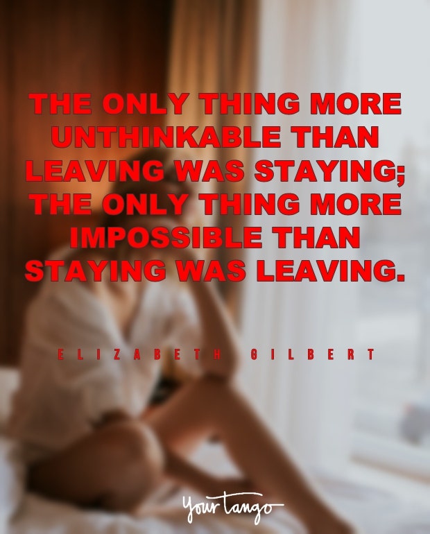 "The only thing more unthinkable than leaving was staying; the only thing more impossible than staying was leaving." — Elizabeth Gilbert