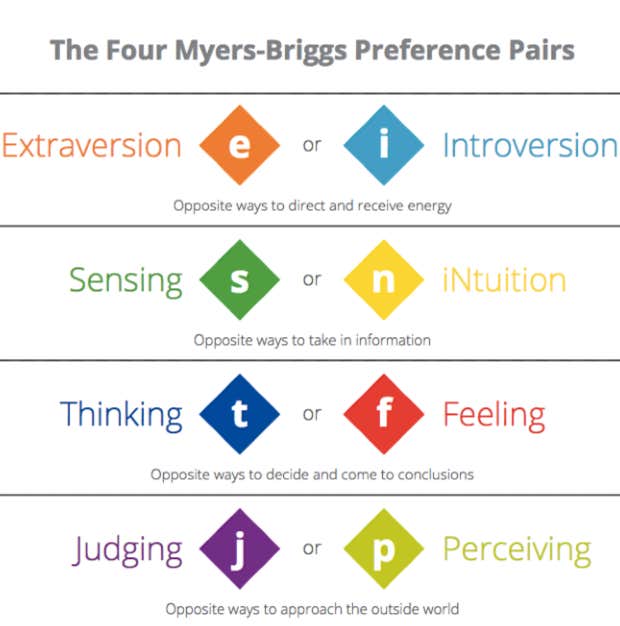As explained by CPP, exclusive publishers of the Myers-Briggs Type Indicator® (MBTI®), people gravitate toward natural preferences in four distinct areas of personality: