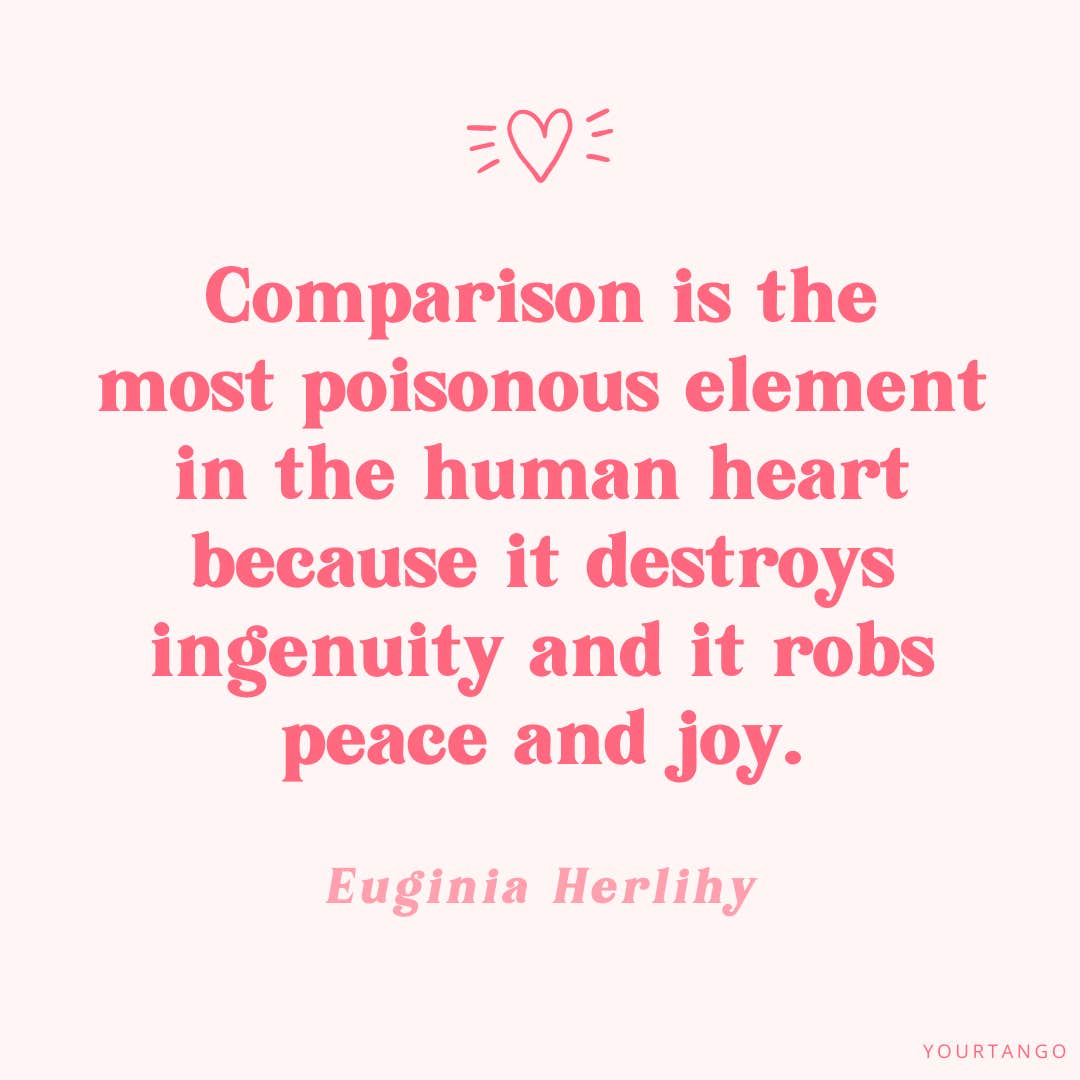 3. "Comparison is the most poisonous element in the human heart because it destroys ingenuity and it robs peace and joy." — Euginia Herlihy