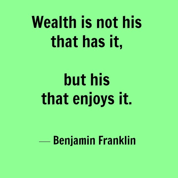 14. "Wealth is not his that has it, but his that enjoys it." — Benjamin Franklin