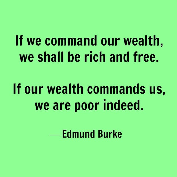 15. "If we command our wealth, we shall be rich and free. If our wealth commands us, we are poor indeed." — Edmund Burke