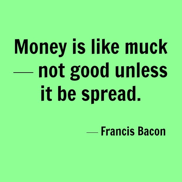 2. "Money is like muck—not good unless it be spread." — Francis Bacon