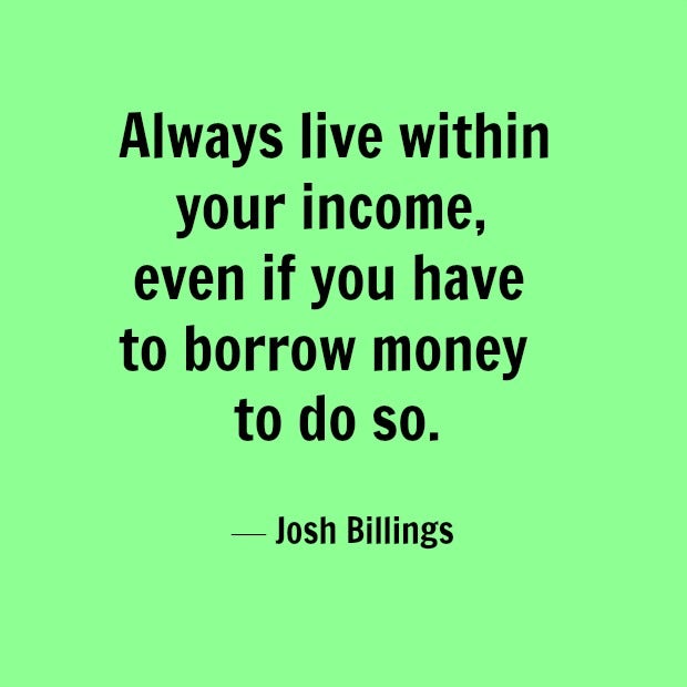 4. "Always live within your income, even if you have to borrow money to do so." — Josh Billings