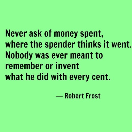 5. "Never ask of money spent, where the spender thinks it went. Nobody was ever meant to remember or invent what he did with every cent." — Robert Frost