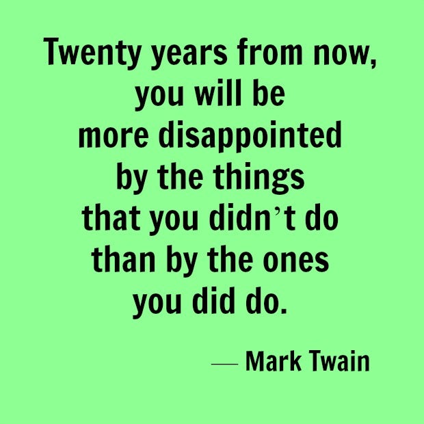 8. "Twenty years from now you will be more disappointed by the things that you didn’t do than by the ones you did do." — Mark Twain