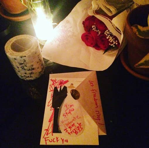 Some even came bearing gifts fit for the occasion: wedding-themed toilet paper to wipe me with, a bouquet of roses, and my comedian friend Vicky even brought me a very appropriately redone wedding card.