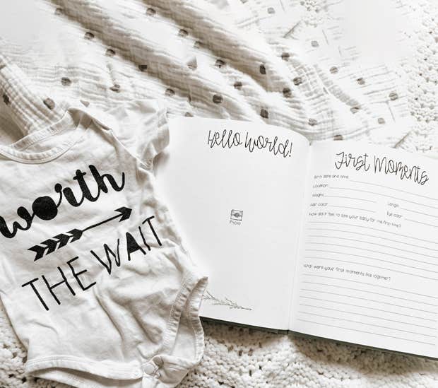 A beautiful way to document her pregnancy, this gender-neutral memory book is filled with thought-provoking prompts, note areas for her to journal about whatever feels important, and plenty of space for bump and ultrasound photos.