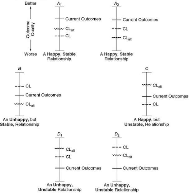 Remember the importnat factors of interdependence theory: Stabilty, happiness, outcomes, alternatives.