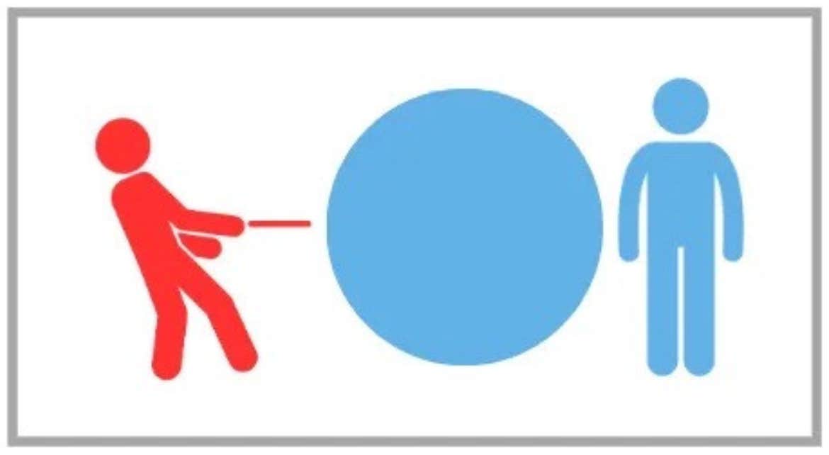 When you (red) employ the pushing method, the space between the two people is filled only with you. There is no room for the other person.