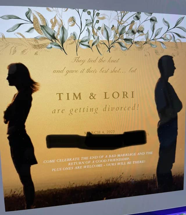 Couple Sends Out Invites To Their Joint Divorce Party, Saying 'Plus Ones Are Welcome… Ours Will Be There'