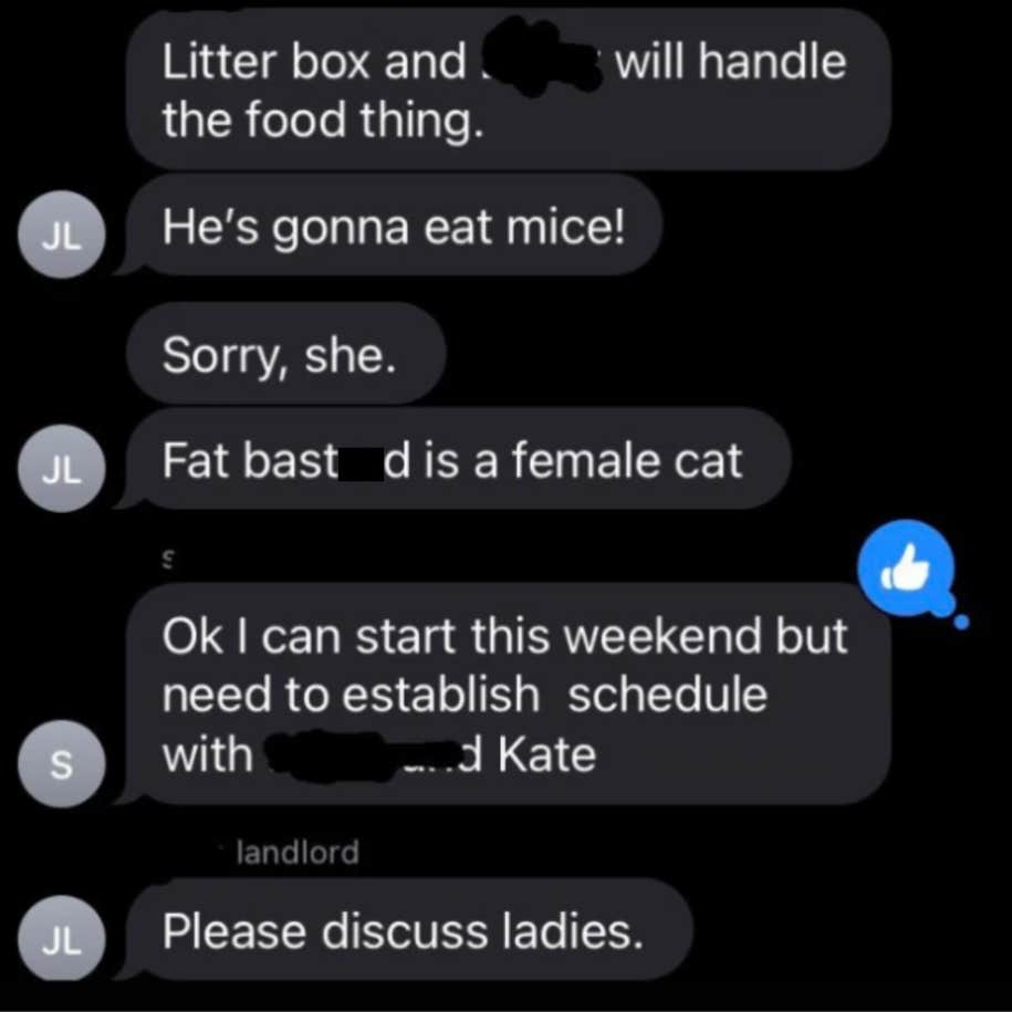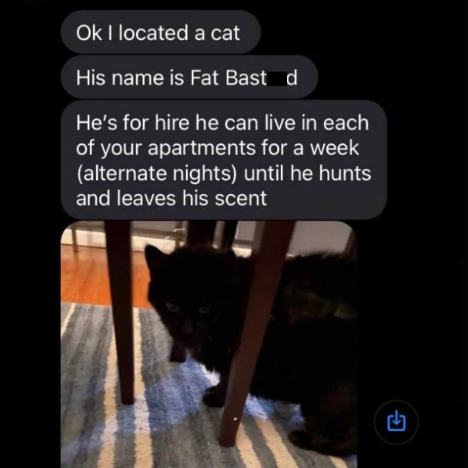The landlord found a cat named Fat Bast--d, who he hired to be a 'mouser.'