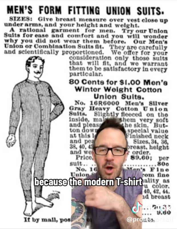 Neil acknowledged that if Conn ever saw his video, he might be a bit scandalized by what he had on, which was a plain T-shirt. In classic teacher style, Neil pointed out that the modern T-shirt was originally made from a 2-piece union suit, which was just another style of women's underwear at the time.