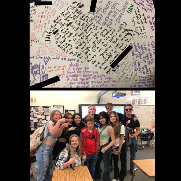 Amazingly, the very next day when Brody was at school, he sent his mom a text that included a picture of his yearbook, now filled with names and messages from not only his classmates but eighth graders and high schoolers as well. Some of the students even left their phone numbers in the yearbook so Brody could get in touch with them outside of school.