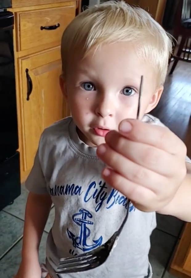 In the video, posted by TikToker @jett_theshowstopper, a little boy named Jett holds up a fork he bent as his mom tells him to explain what happened. He addresses his dad in the video, presumably so his mom can send the video to his father. As many noticed, he appears to have a tear on his cheek and it seems like he may have been upset and afraid before his mom ever began filming him.