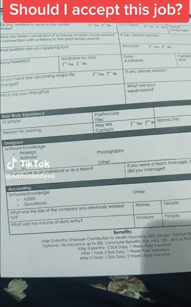 In a video, TikTok user Eve Peña, who shares career advice and daily workplace skits on her platform, shared that she has been on the hunt for a new job for the last two months, and while she thought she had finally found a job, she noticed a few red flags during the interview process.