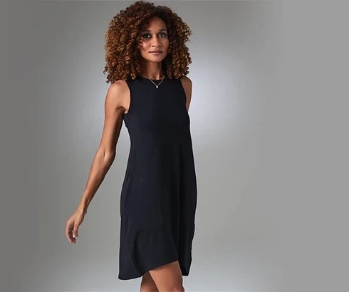 A LBD that makes lounging flattering and insanely comfortable; an unlikely but idyllic combination. Featuring a contoured shape, reversible neckline, and sweat-absorbent underarm pads, you'll want to wear this dress as more than an undershirt.