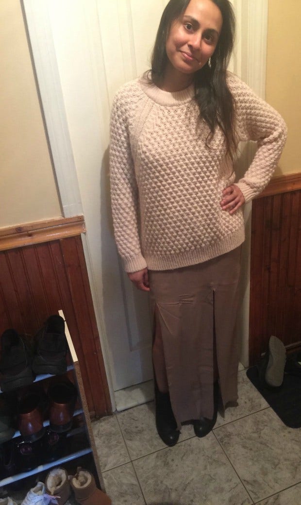 Since avoiding baggy or oversized clothing was a rule, for day one I wore an oversized sweater. Instead of trying to elongate my legs by pairing this outfit with a belt and heels, I just paired it with flats.